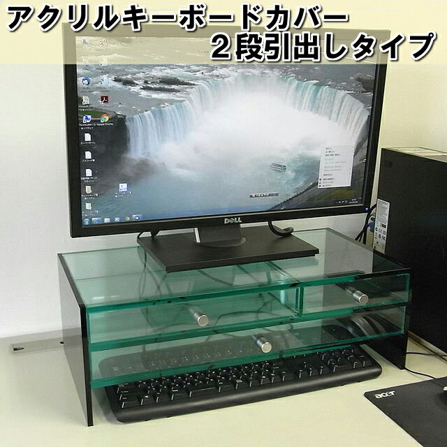 キーボード 収納 モニター台2段引出しラージ&スモール&ミドルタイプ ベース透明 側板ブラック