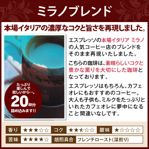 そして、さらには、本場イタリアは、ミラノの老舗バール(BAR)の美味しさと香りを表現したミラノブレンドをご用意。