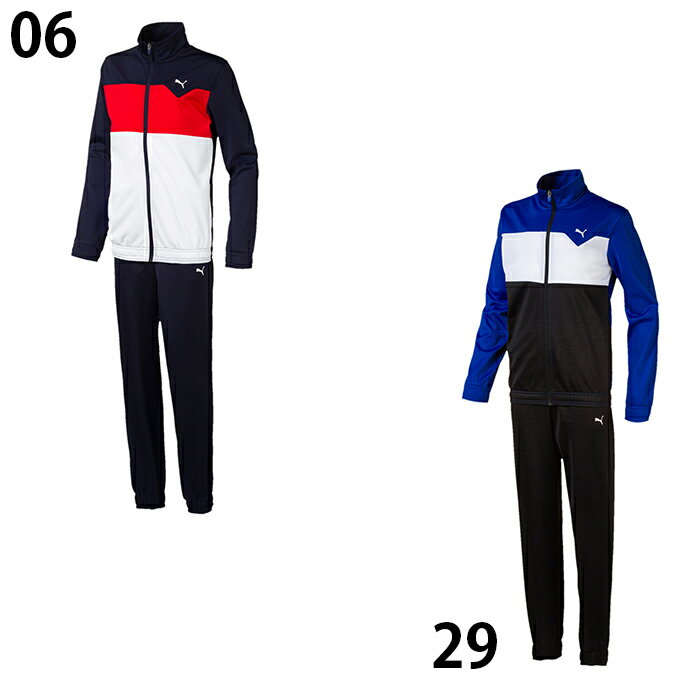■カラー:01 ( Puma Black )、06 ( Peacoat )、29 ( Surf The Web ) ■サイズ:120、130、140、150、160 ■素材:トリコット起毛/ポリエステル100% ■特徴: クラシックなトラックスーツシルエット レギュラーフィット コラーネックライン ジッパーで開閉可能 ゴム素材の袖と裾 ドローコード付きゴムウエスト サイドポケットx2 胸元にラバーのPUMAキャットロゴプリント 足にラバーのPUMAキャットロゴプリント 検索ワード:スポーツウェア上下 ジャージ上下セット