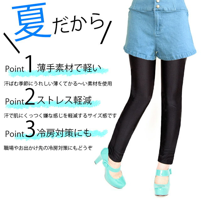 [Liapom]レギンス レディース ポリエステル 1分丈 さらさら クール 涼感 涼しい 冷感 ひんやり 春物 アンダーパンツ M L 黒 薄手 ストレッチ ヨガ ヨガウェア 無地 ぴったりと着用 吸汗速乾